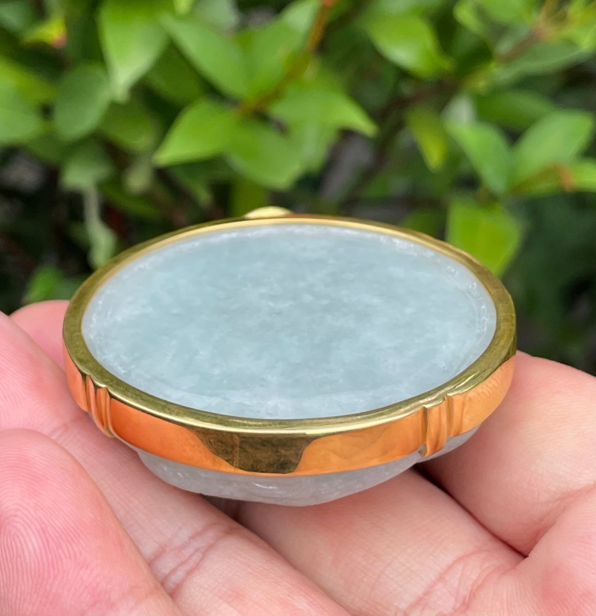 This pendant is carved from 100% genuine and natural jadeite jade, ethically sourced from Myanmar (Burma)—the world’s most prestigious origin of fine jadeite. It features a luminous bluish apple green tone, softly translucent with fine cloudy inclusions that speak to its natural character and origin.