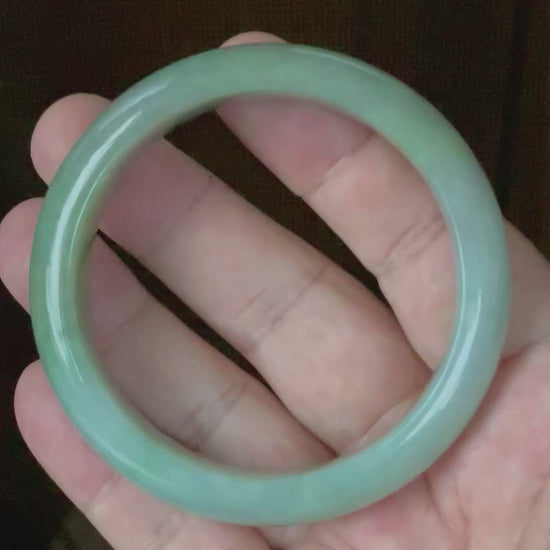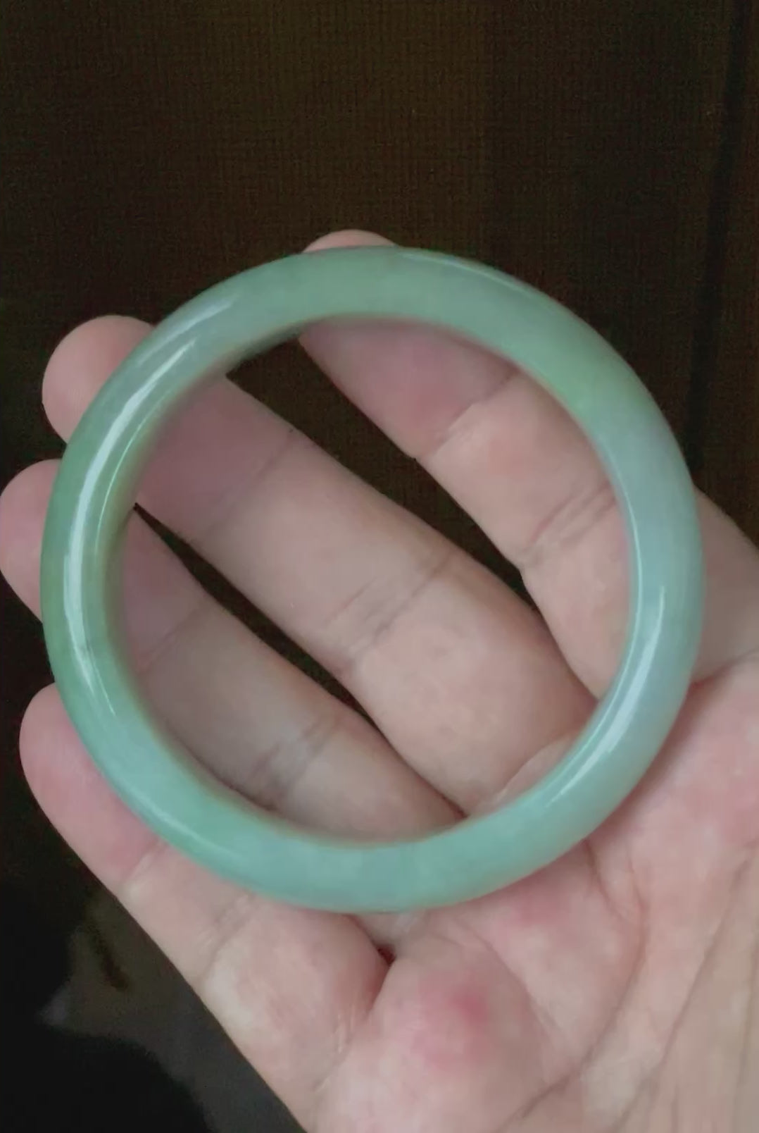Natural Certified Burmese Jadeite Jade Bangle – Icy Bluish Apple Green with Rare Emerald Green Tones – 58mm – JB118