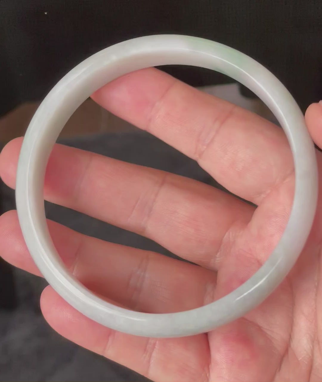 In jadeite tradition, white and grey hues symbolize clarity, focus, and purification, while the imperial green brings prosperity, luck, and energetic renewal. This bangle is believed to attract good luck, healing, and harmonious energy to its wearer, making it much more than a beautiful accessory—it’s a meaningful talisman for well-being and abundance.