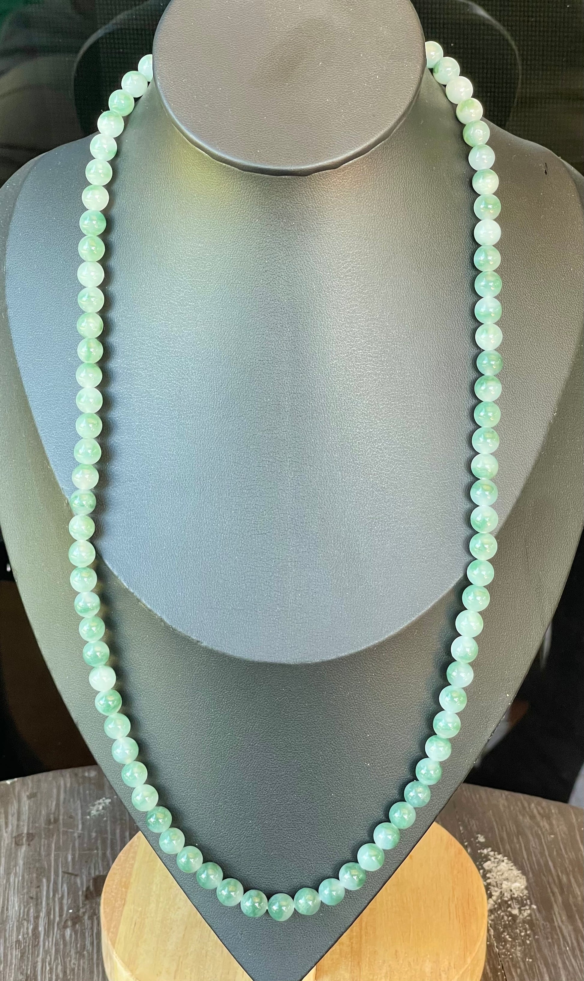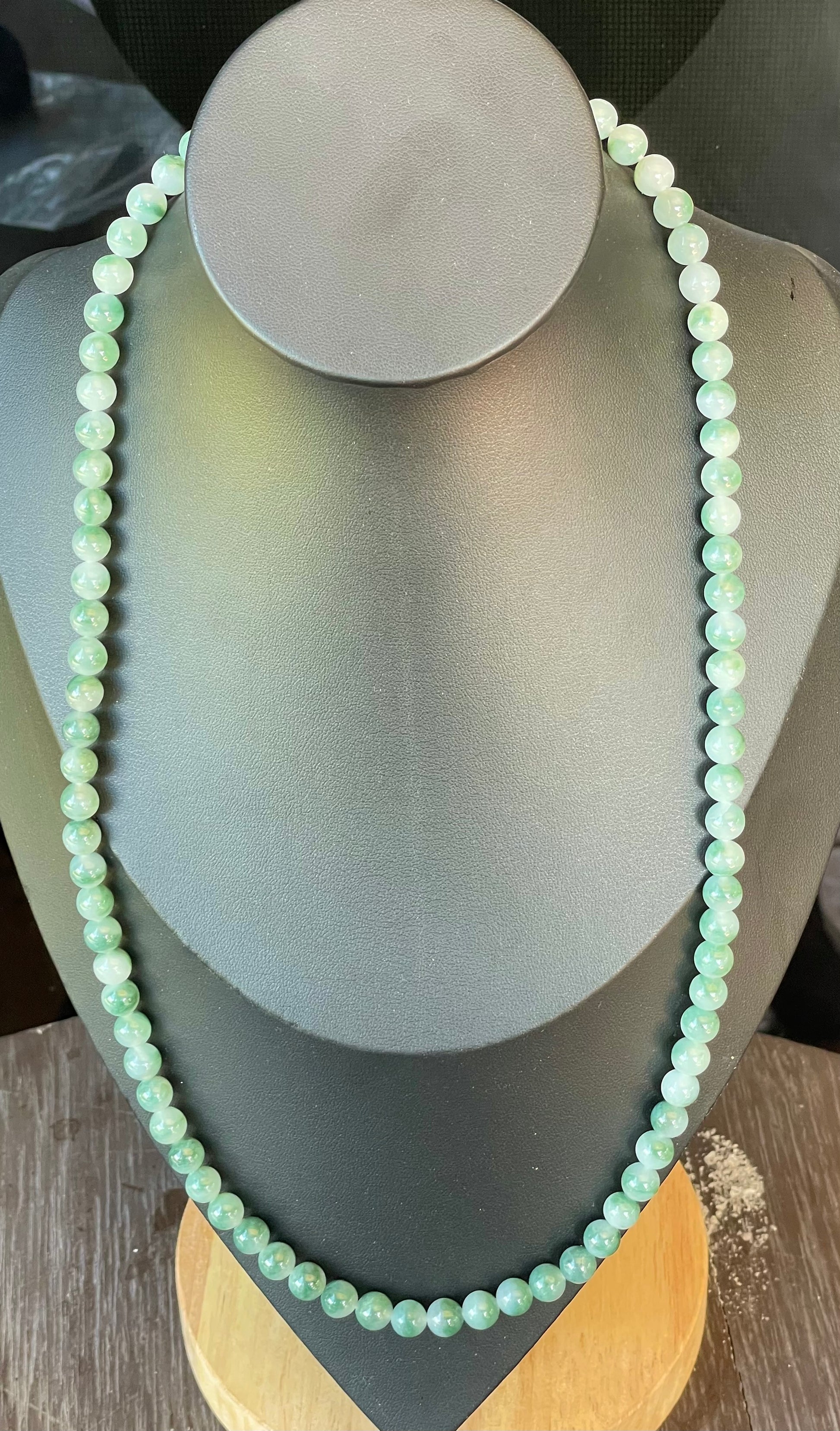 Natural Certified Burmese Jadeite Jade Beaded Necklace – Icy Imperial & Apple Green – 7mm Beads – JN003