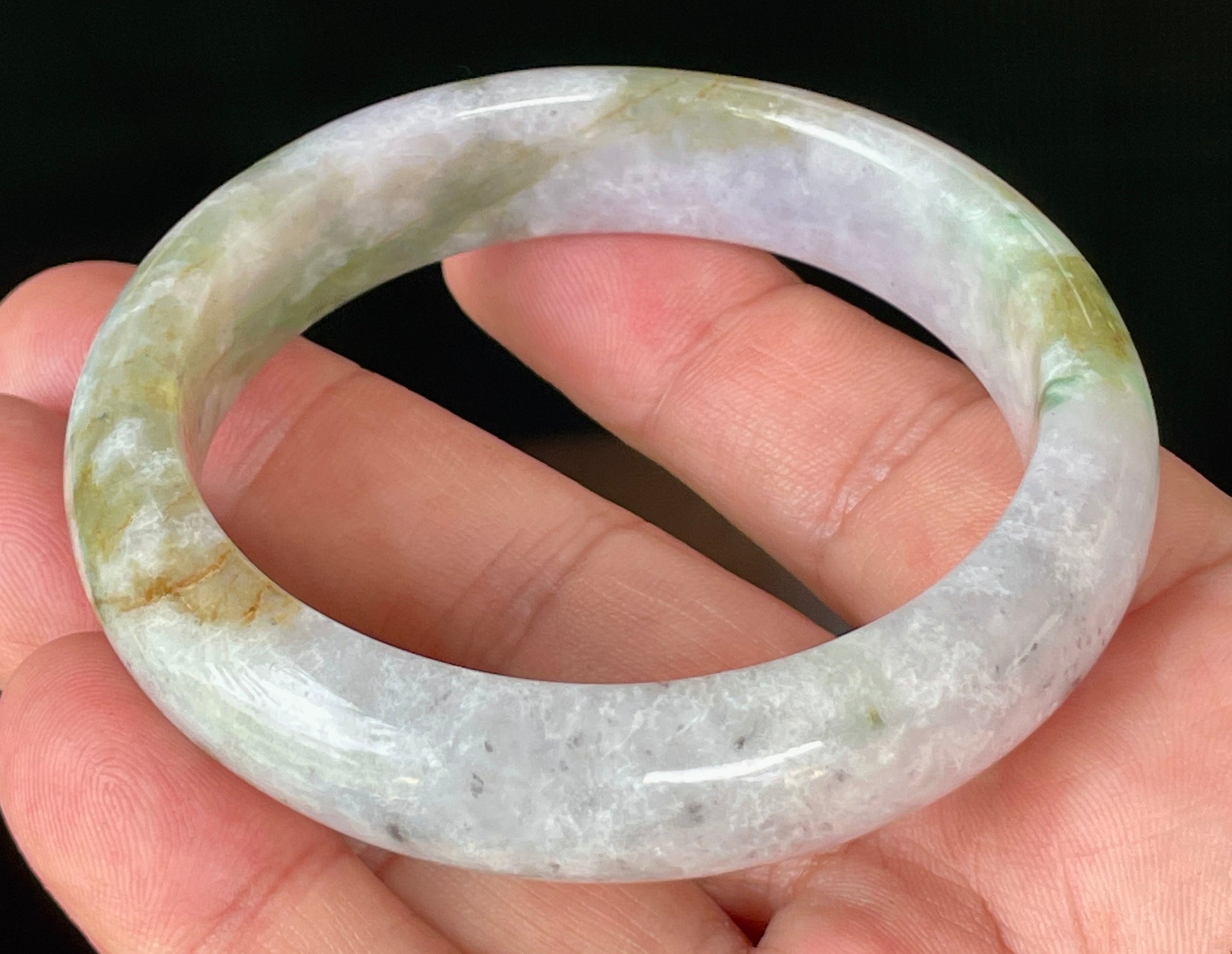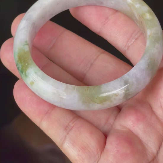Natural Certified Burmese Jadeite Jade Bangle – Icy Milky White, Grayish, Apple Green & Black – 56.6mm – JB874