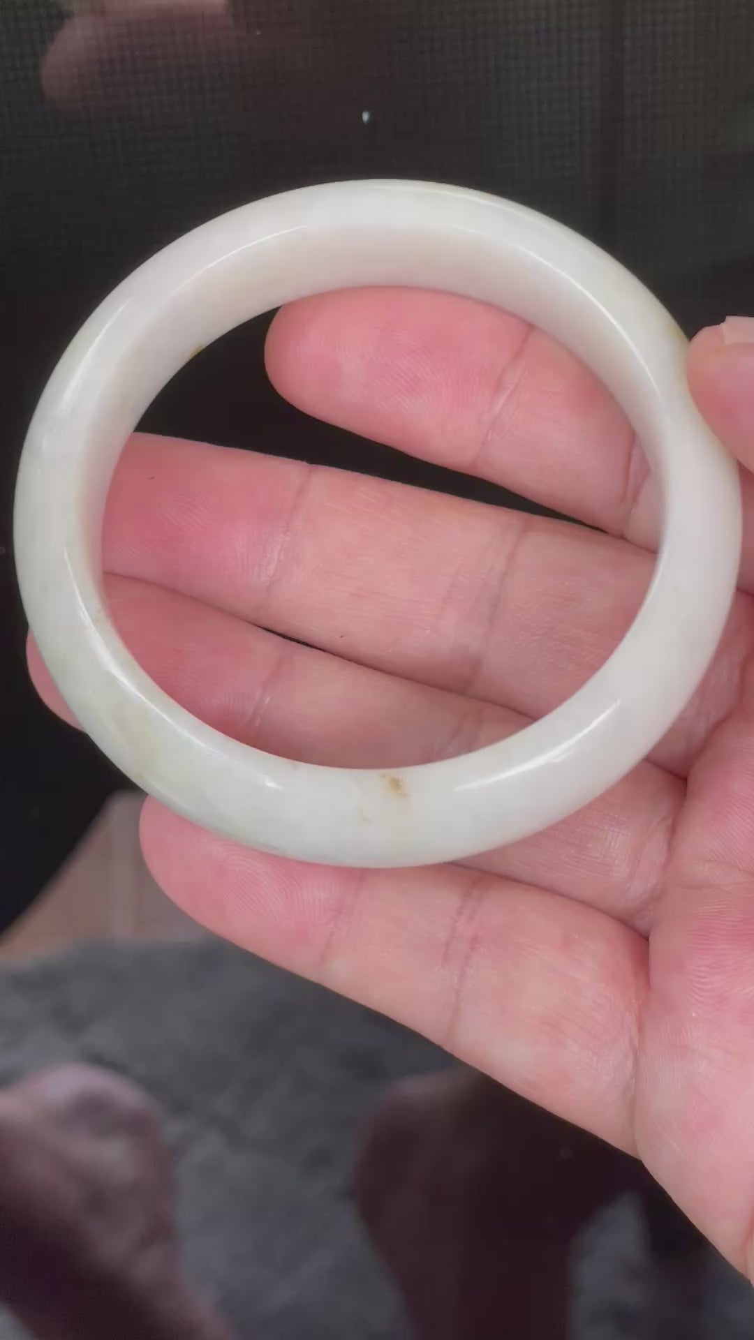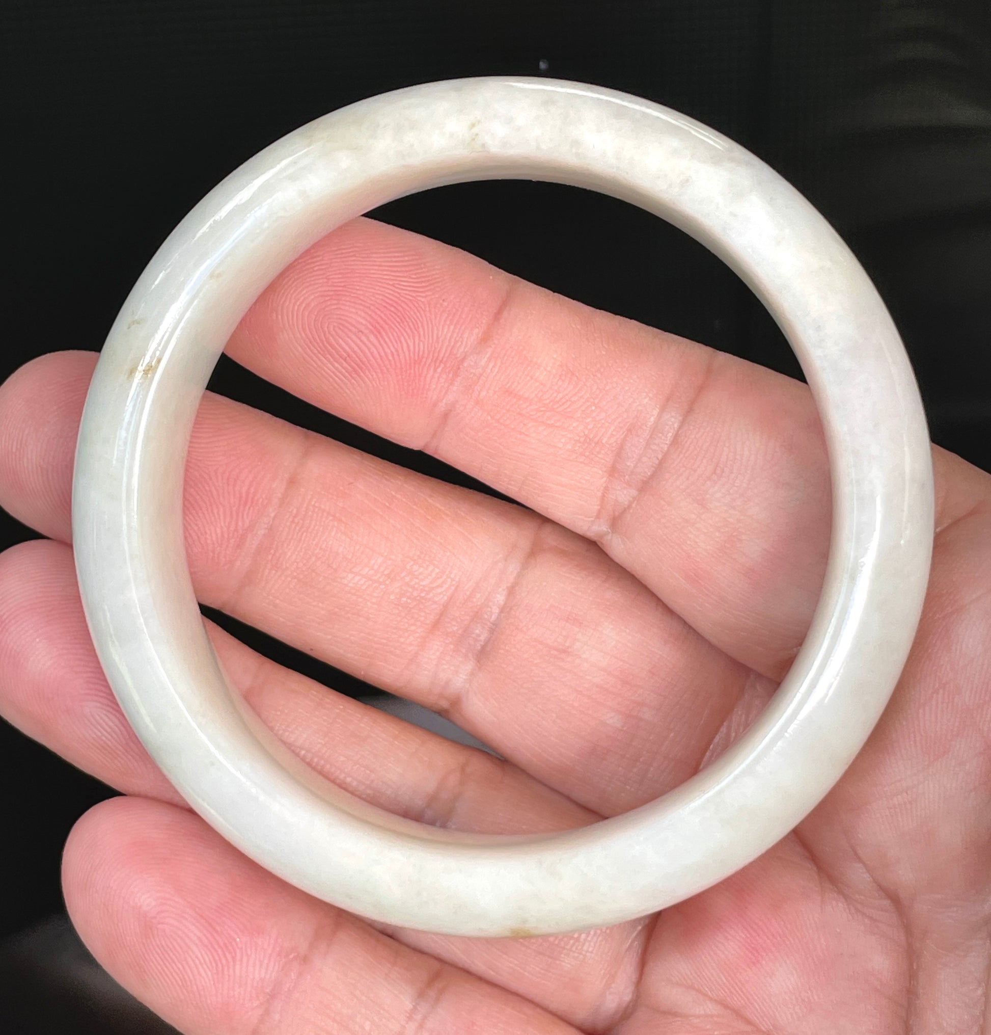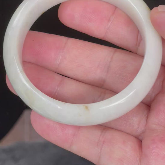 Natural Certified Burmese Jadeite Jade Bangle – Icy Milky White with Light Yellow & Honey Hues – 57.4mm – JB805