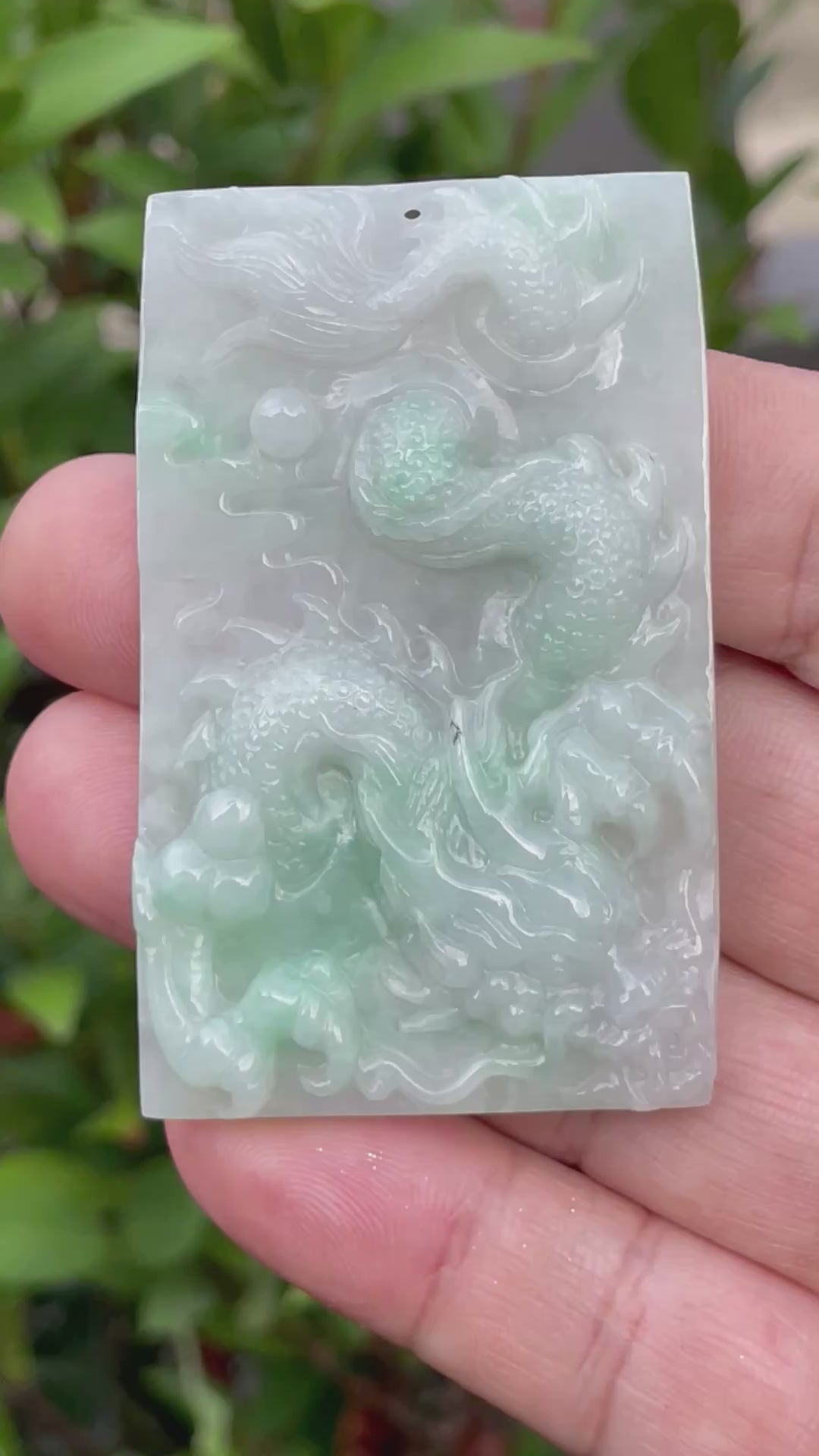 Natural Certified Burmese Jadeite Jade Pendant – Icy White & Imperial Green – Hand-Carved Dragon Motif – JP059