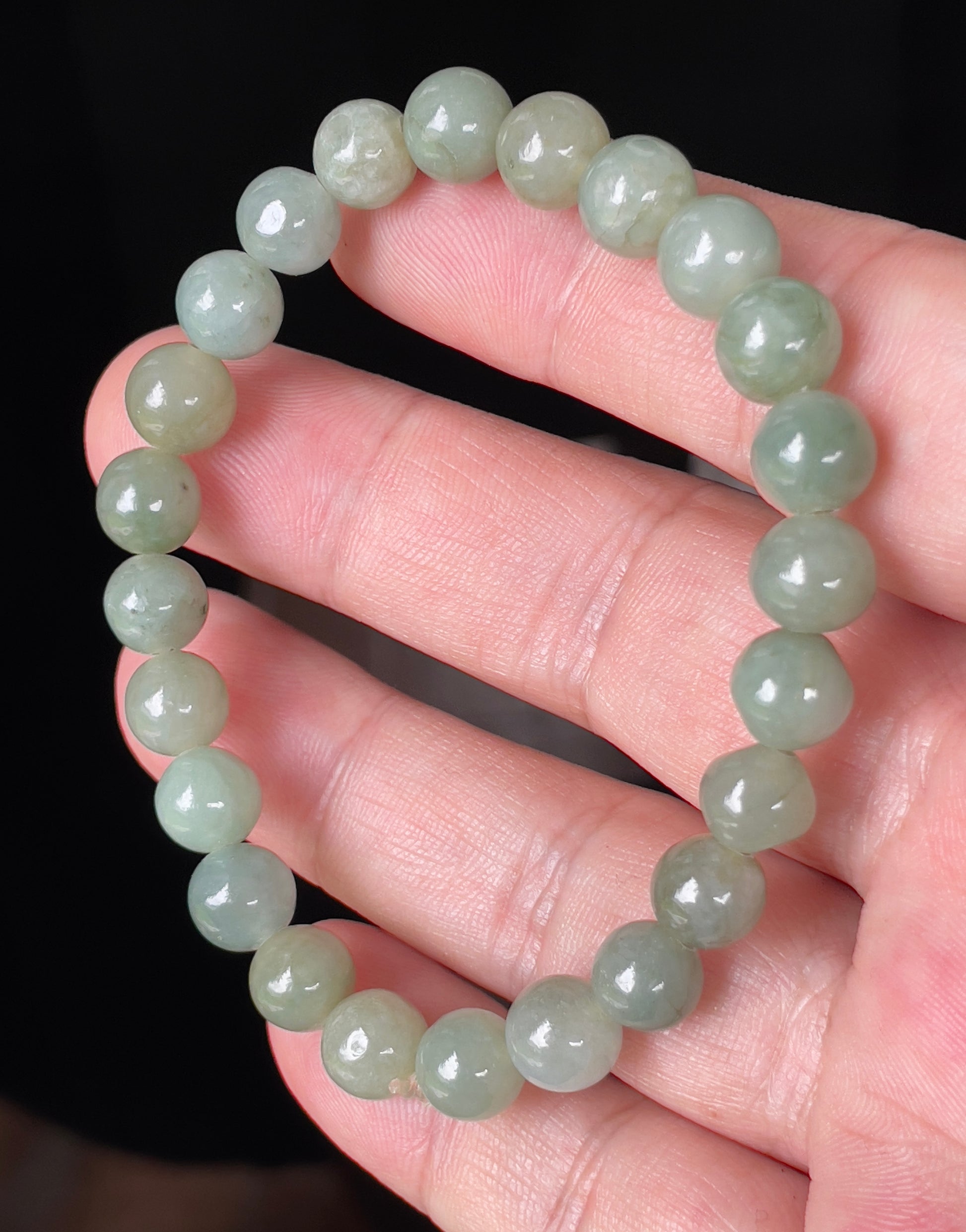 Natural Burmese Jadeite Jade Beaded Bracelet – Icy Apple Green – 8.2mm – JBB121