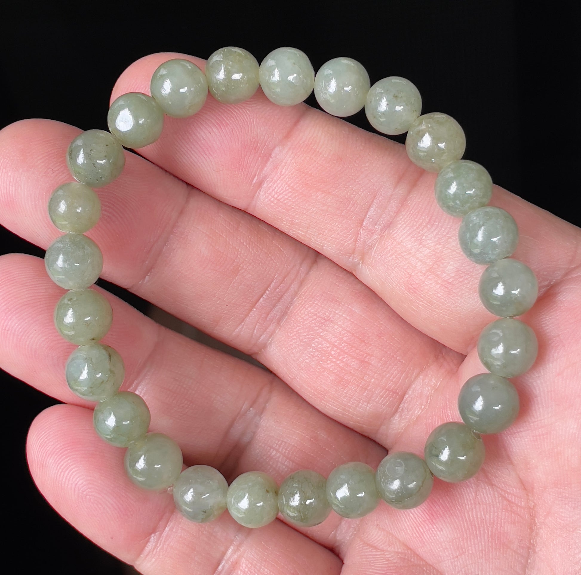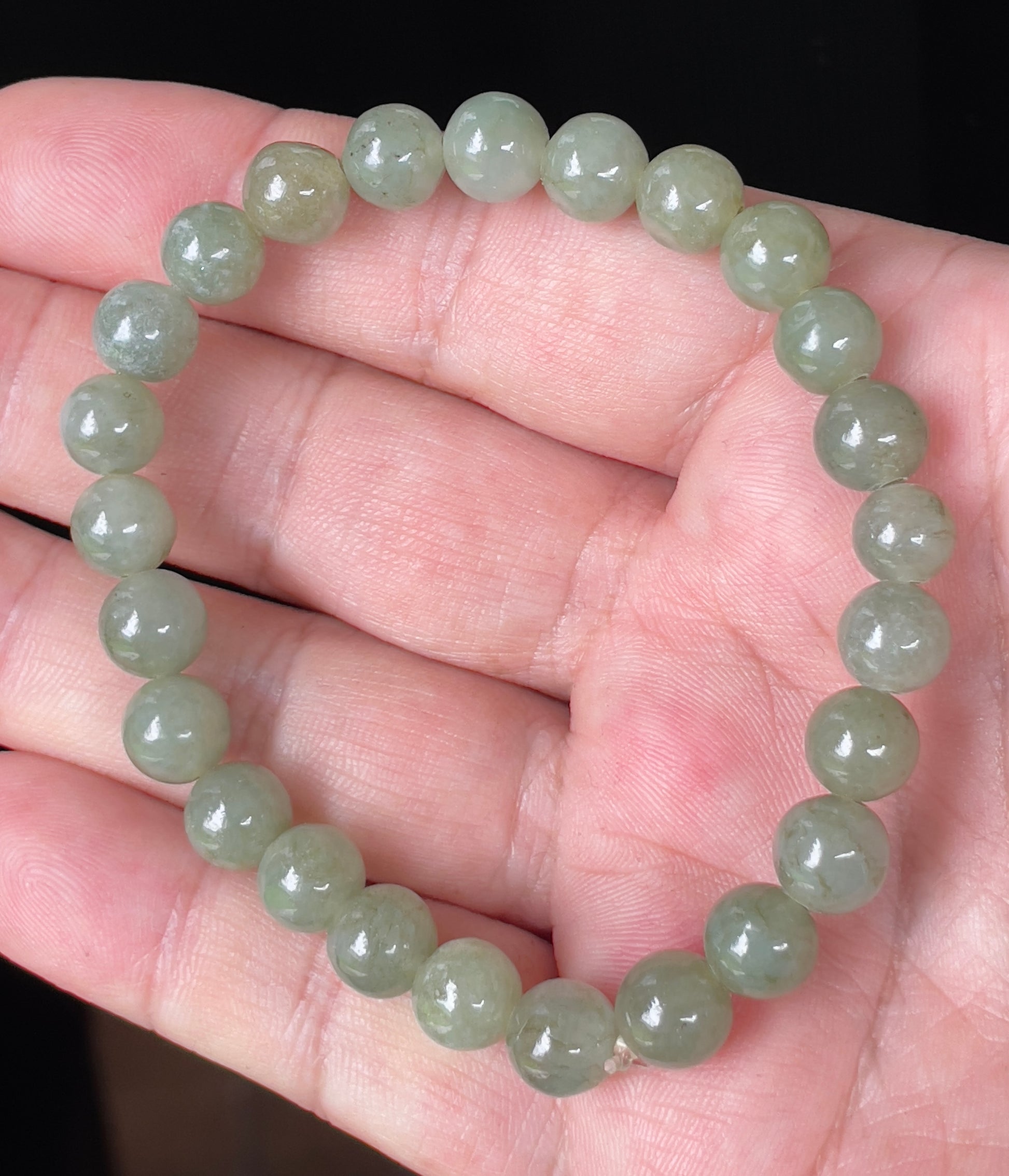 Natural Burmese Jadeite Jade Beaded Bracelet – Icy Apple Green – 8.2mm – JBB124