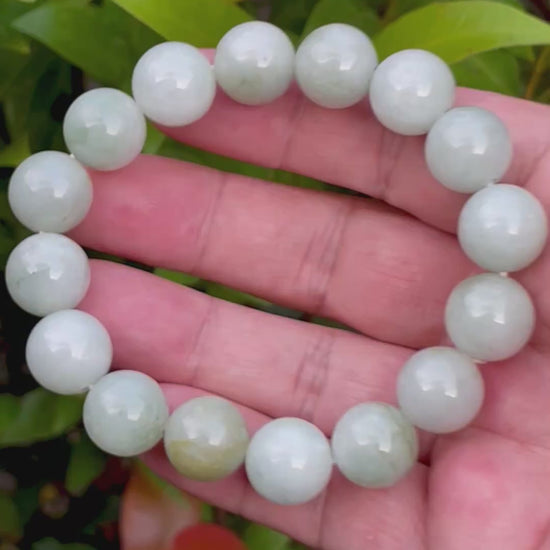 Natural Burmese Jadeite Jade Beaded Bracelet – Icy Bluish Milky White & Apple Green – 13.8mm – JBB155