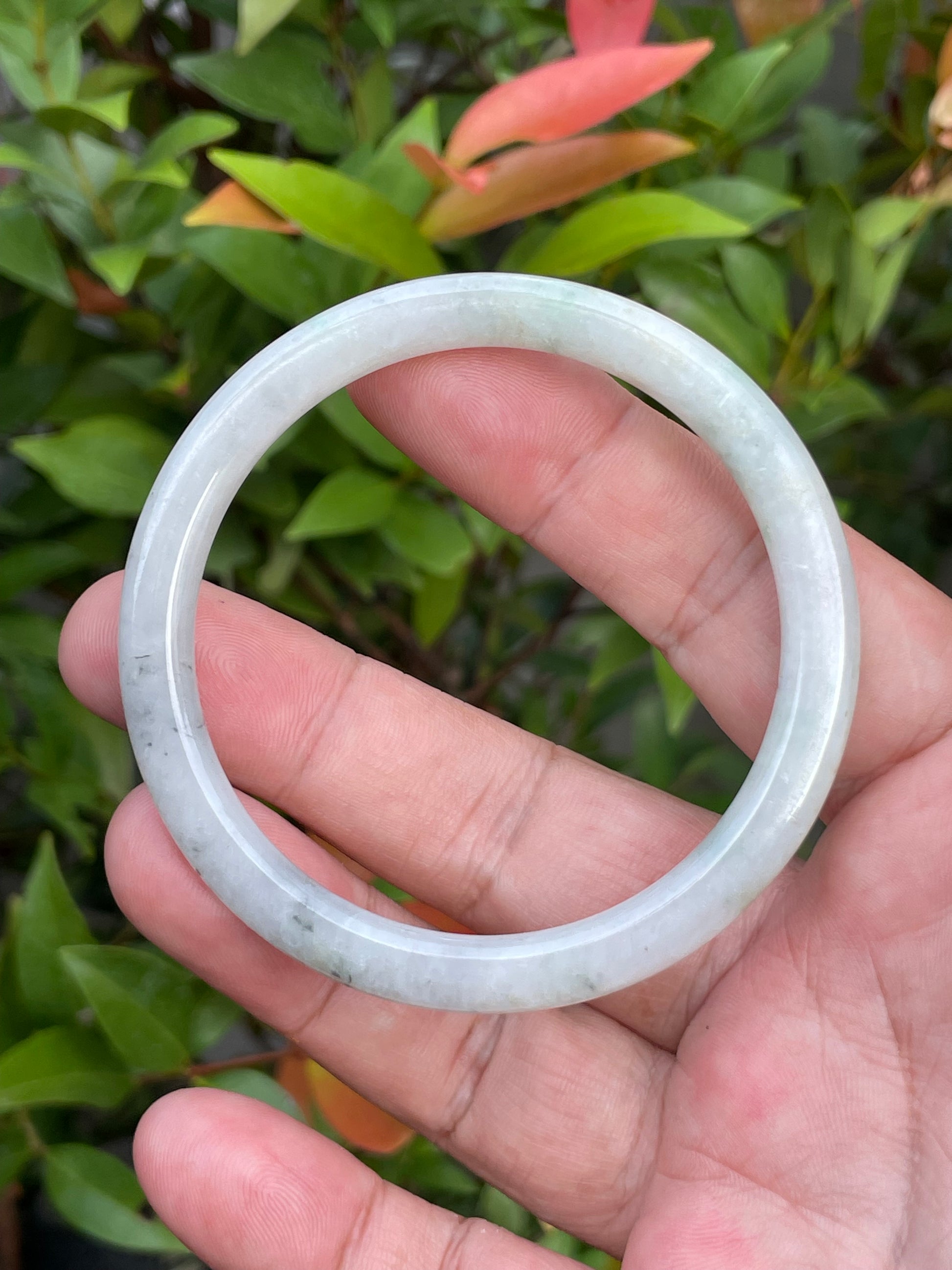 Natural Burmese Jadeite Jade Bangle – Icy Greyish Milky White with Green – Princess Cut – 56.7mm – JB751