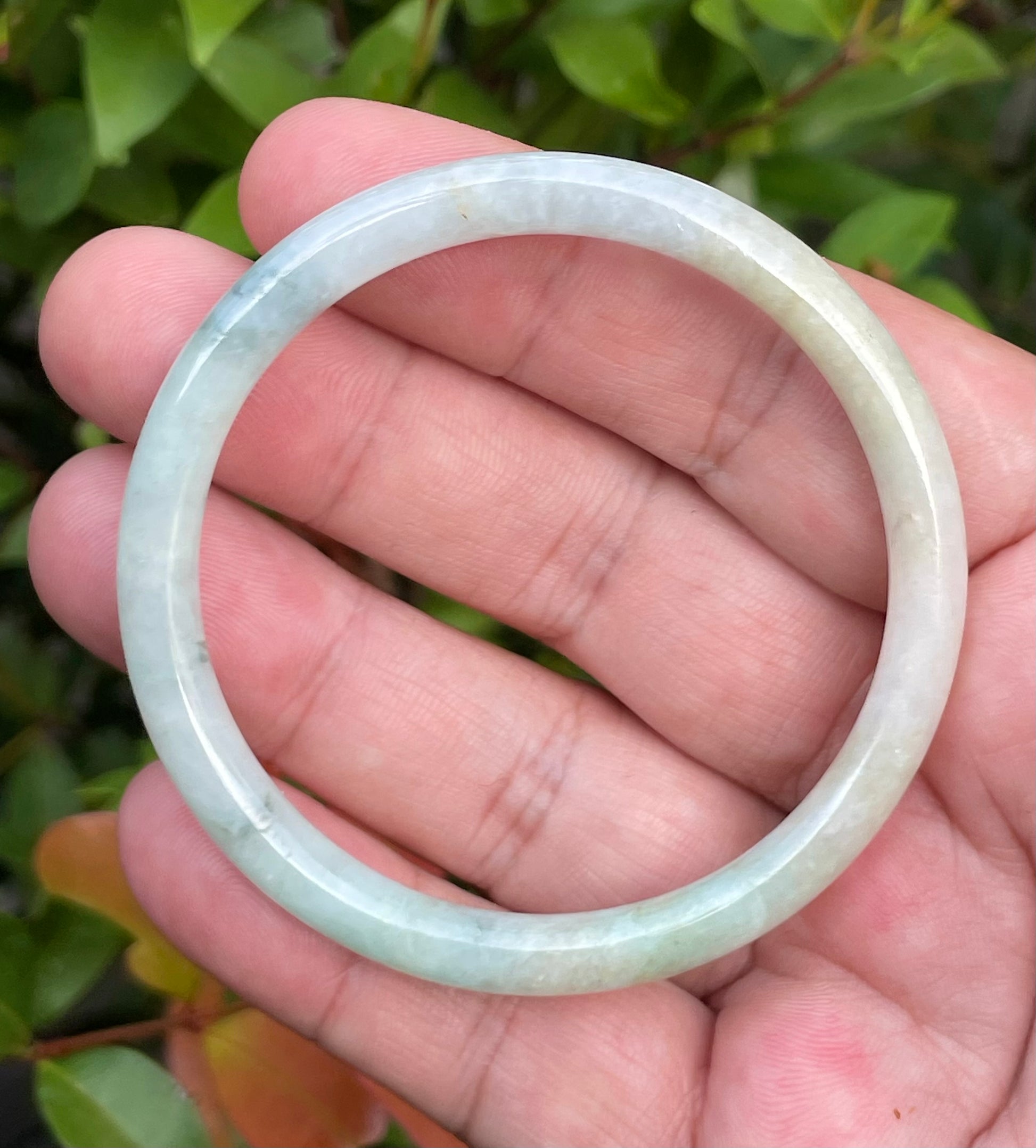 Natural Burmese Jadeite Jade Bangle – Icy Milky White with Bluish Green & Yellow – Princess Cut – 54.7mm – JB753