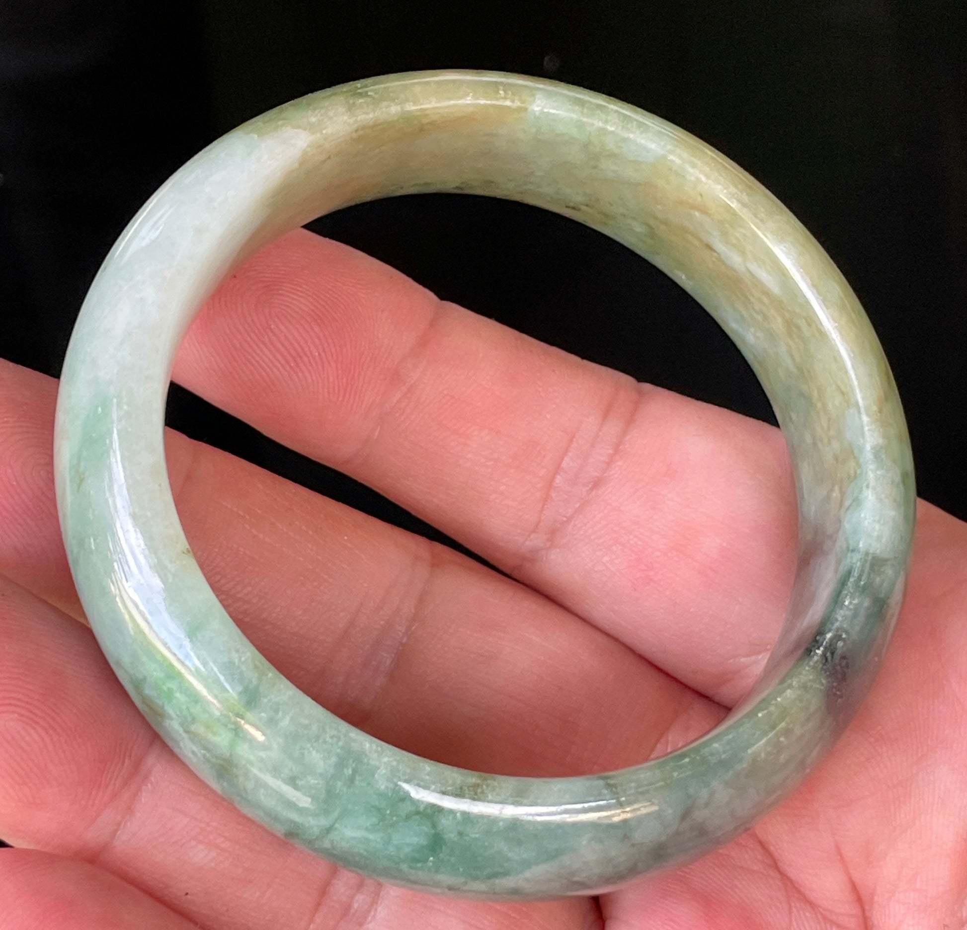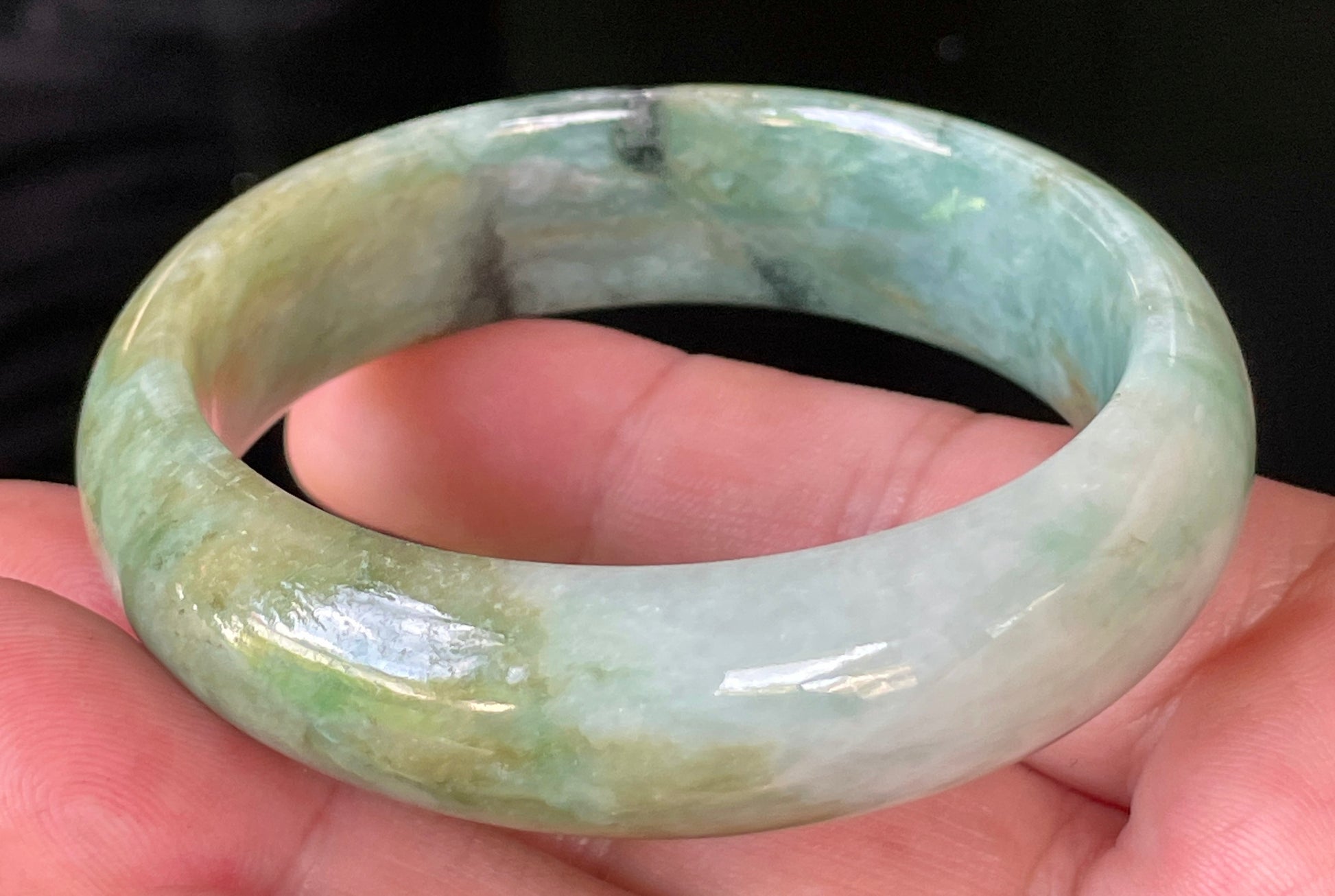 Natural Burmese Jadeite Jade Bangle – Icy Bluish Apple Green with Honey & Milky White Hues – 55mm – JB233