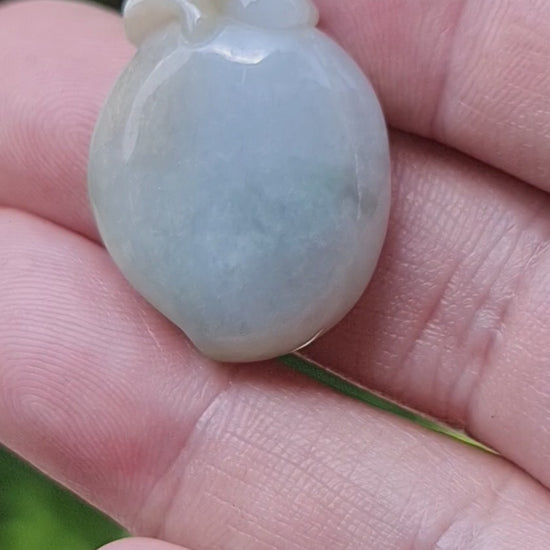 Natural Burmese Jadeite Jade Pendant – Icy Bluish, Milky White & Moss Green – Hand-Carved Peach Motif – JOP007