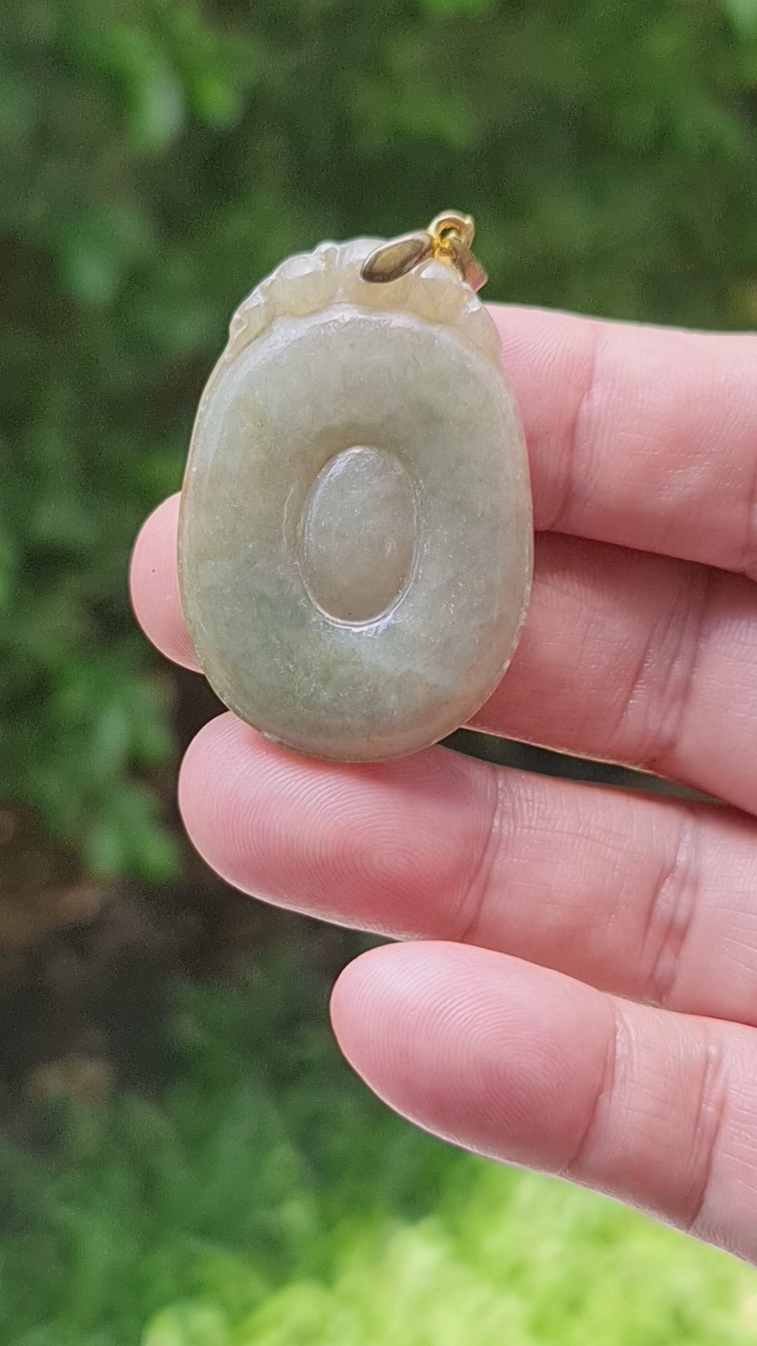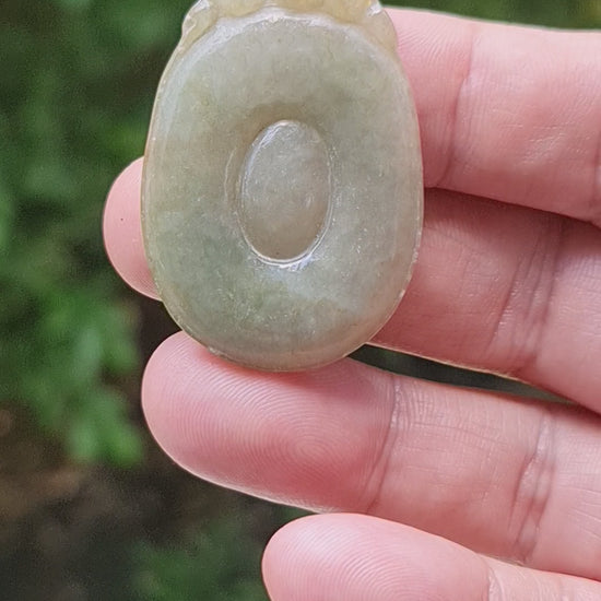 This pendant is carved from 100% genuine and natural jadeite jade, ethically sourced from Myanmar (Burma)—the most esteemed origin for high-quality jadeite. It features a stunning blend of icy imperial green, moss green, and warm honey tones, with a soft translucency and smooth finish that glows beautifully under natural light.