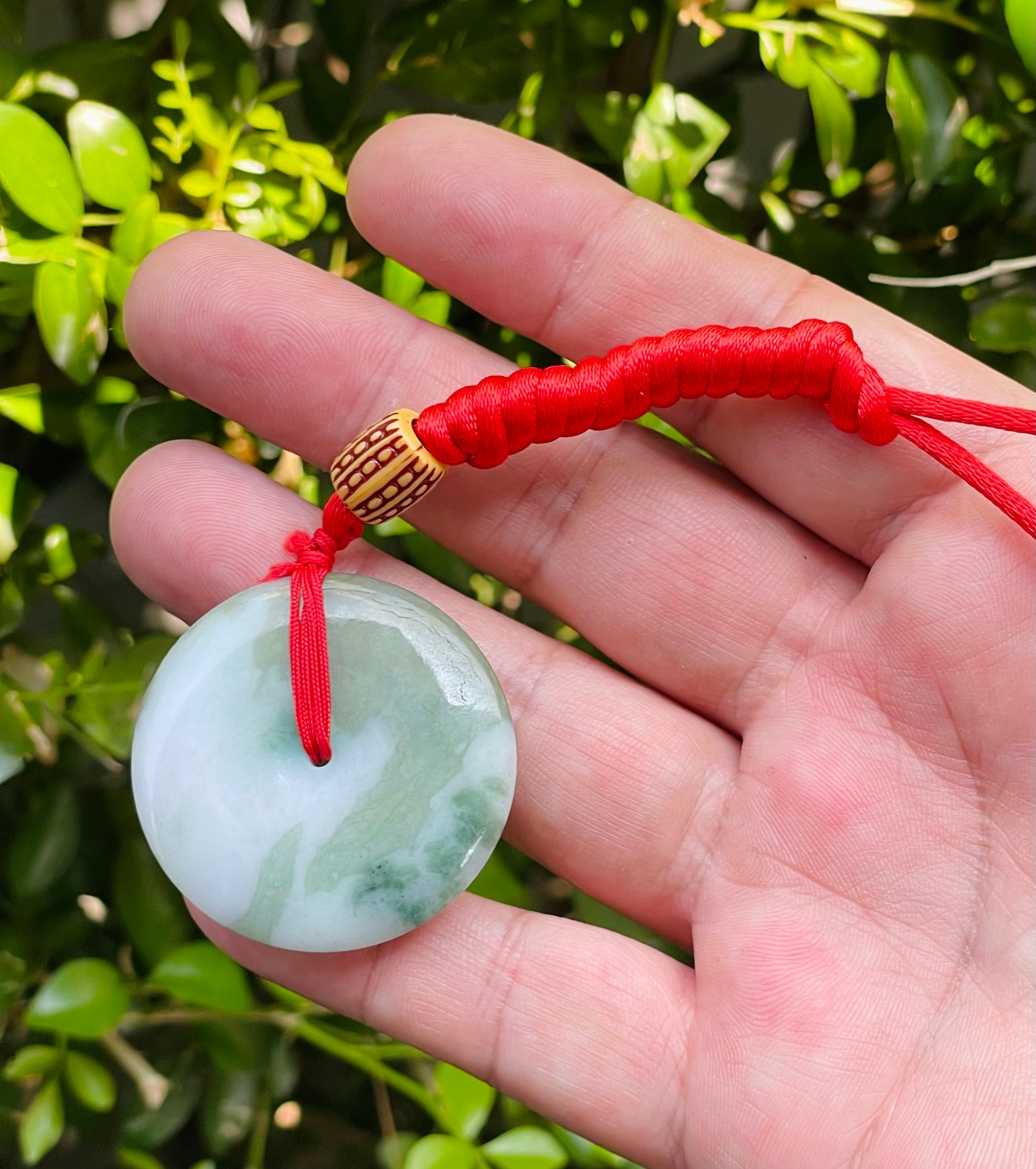 This pendant is strung on a vivid red adjustable necklace cord, symbolizing good luck and vitality in Chinese culture—ready to wear right out of the box.