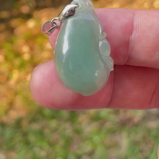 Natural Burmese Jadeite Jade Pendant – Green – Hand-Carved Gourd Motif – JP084