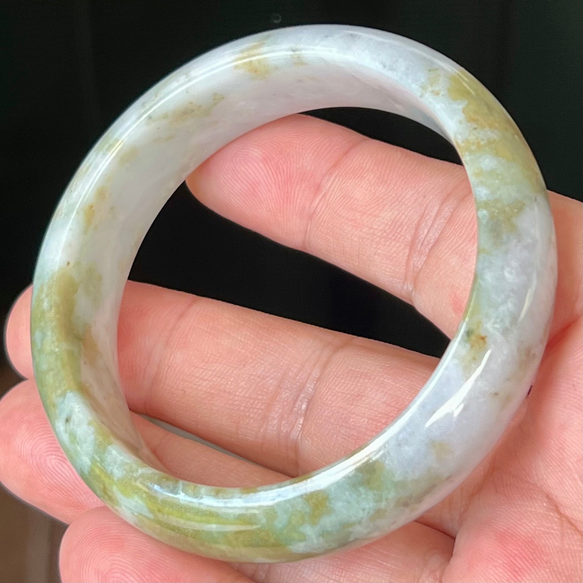 In jade culture, these colors symbolize renewal, abundance, balance, and harmony. Wearing jade is believed to attract good luck, health, and protective energy—making this piece both meaningful and timeless. Every bangle is a unique work of nature, with distinctive marbling and color play. No two are ever exactly alike.