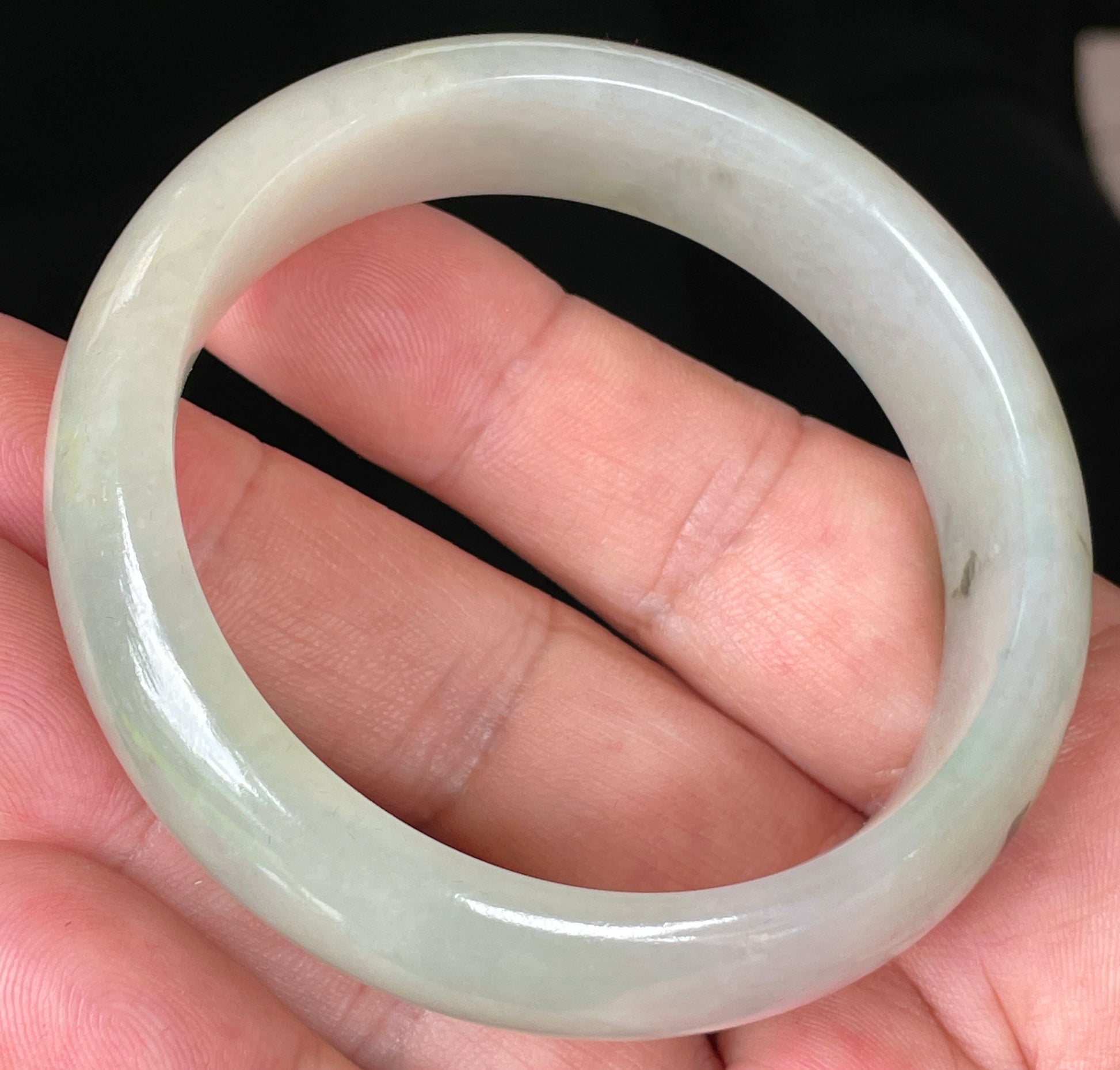 Jadeite jade is traditionally known to bring good luck and healing, supporting emotional balance and drawing prosperity. With its harmonious color palette and comfortable rounded profile, this bangle is a one-of-a-kind collectible and a positive talisman for daily life.