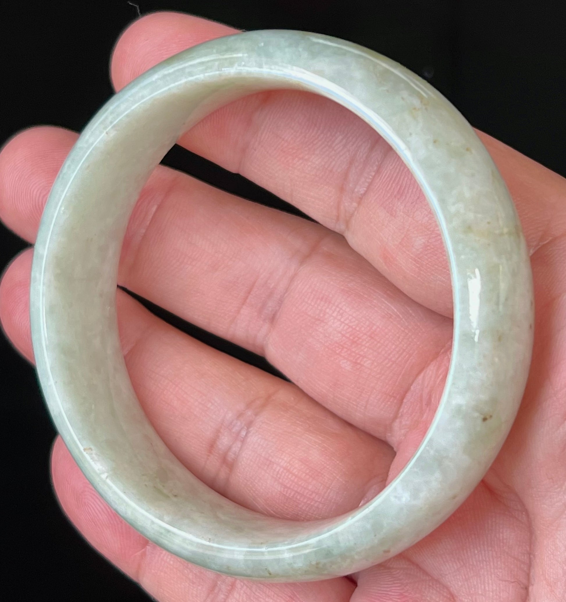 Natural Burmese Jadeite Jade Bangle – Icy Milky White and Apple Green – 58mm – JB551
