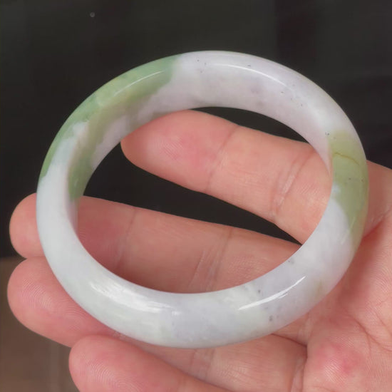 The natural interplay of cool whites and lively greens symbolizes purity, vitality, and renewal, making this piece perfect for daily elegance or meaningful gifting. Each certified jade bangle is a unique creation, showing natural color transitions and captivating texture for true collectible value.