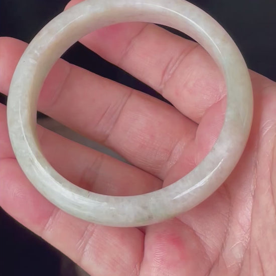 These refined hues symbolize purification, joy, prosperity, and renewal, making this bangle a meaningful talisman for daily wear and an exceptional addition to any jade collection. Each certified jadeite bangle is truly unique, reflecting the natural beauty and ancient tradition of Burmese jade craftsmanship.