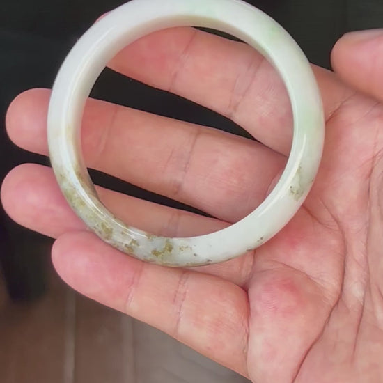 The unique combination of icy white and lush greens represents purification, renewal, prosperity, and healing energy. As a certified piece, this bangle is both a timeless treasure and a symbol of auspicious fortune, shaped by nature and the artistry of Burmese jade craftsmanship.