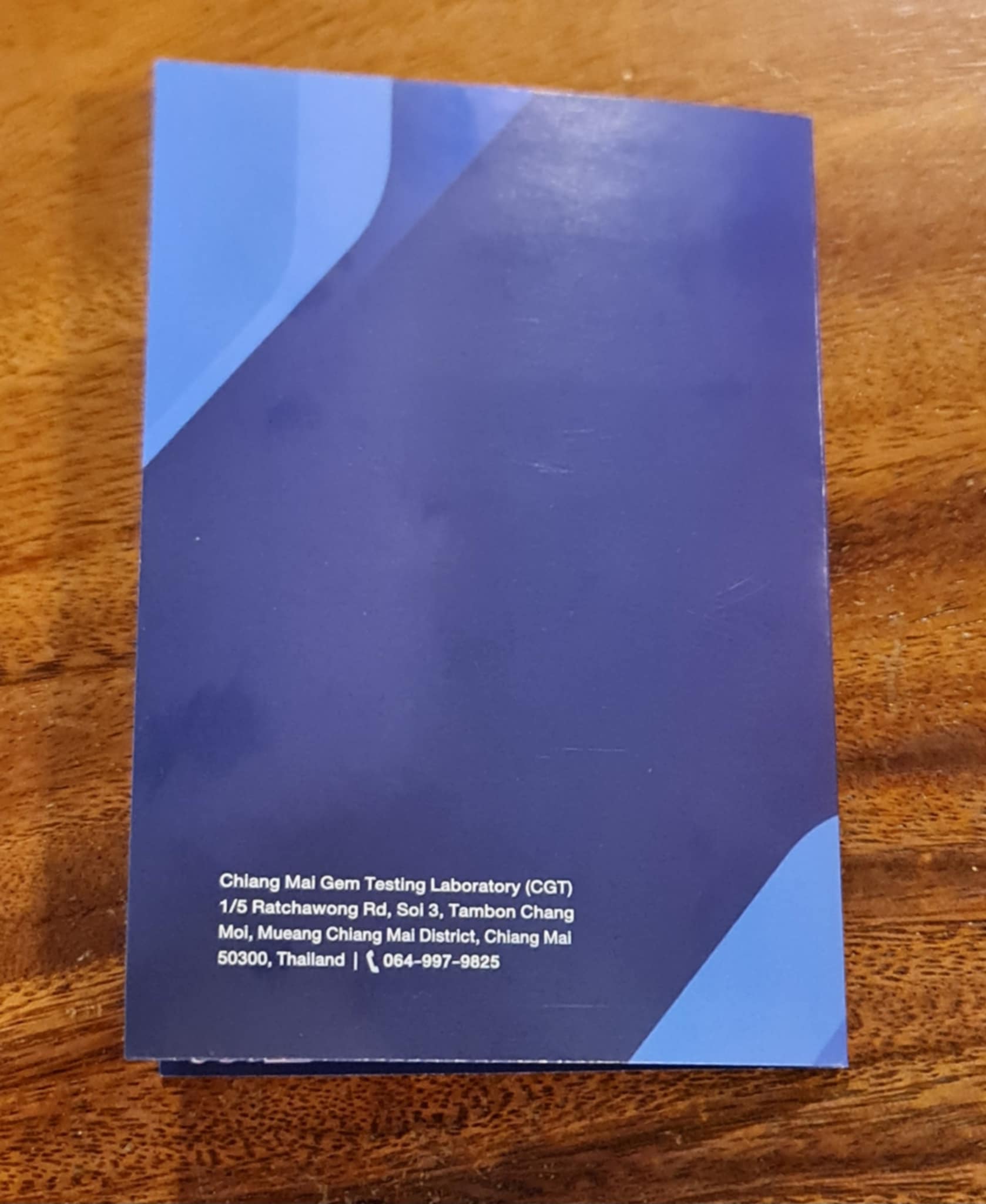 - Issued by CGT (Chiang Mai Gem Testing Laboratory)
